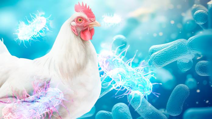 Wu H. et al., 2024, mostraram que os probióticos reduzem a S. Typhimurium em frangos de corte, promovendo melhoria do desempenho zootécnico, modulando a microbiota cecal e diminuindo a inflamação intestinal e do fígado, pela redução das citoquinas anti-inflamatórias, sendo uma alternativa para a substituição dos antibióticos.