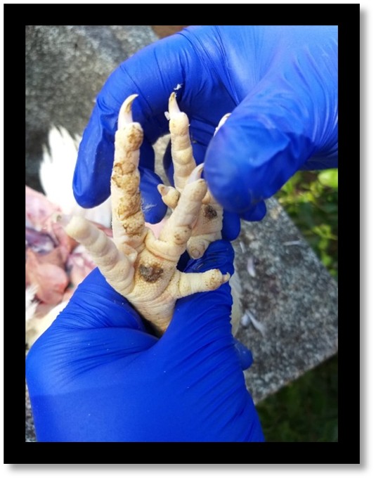 No abatedouro, os casos severos de pododermatite podem resultar na condenação das patas e, em situações mais graves, das carcaças, especialmente quando há sinais de infecção sistêmica (GARCIA et al., 2021). Essa condenação representa uma perda significativa para o setor, uma vez que o pé de frango é considerado um subproduto de alto valor agregado, amplamente exportado e valorizado por mercados internacionais, como o asiático, onde é destinado ao consumo humano.