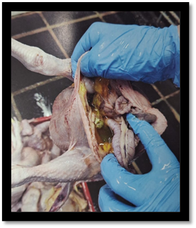 Causas patológicas: relacionadas a lesões provenientes de processos infecciosos ou de outras enfermidades que acometem as aves ainda no campo (BELINTANI et al., 2019; BERND et al., 2020).
